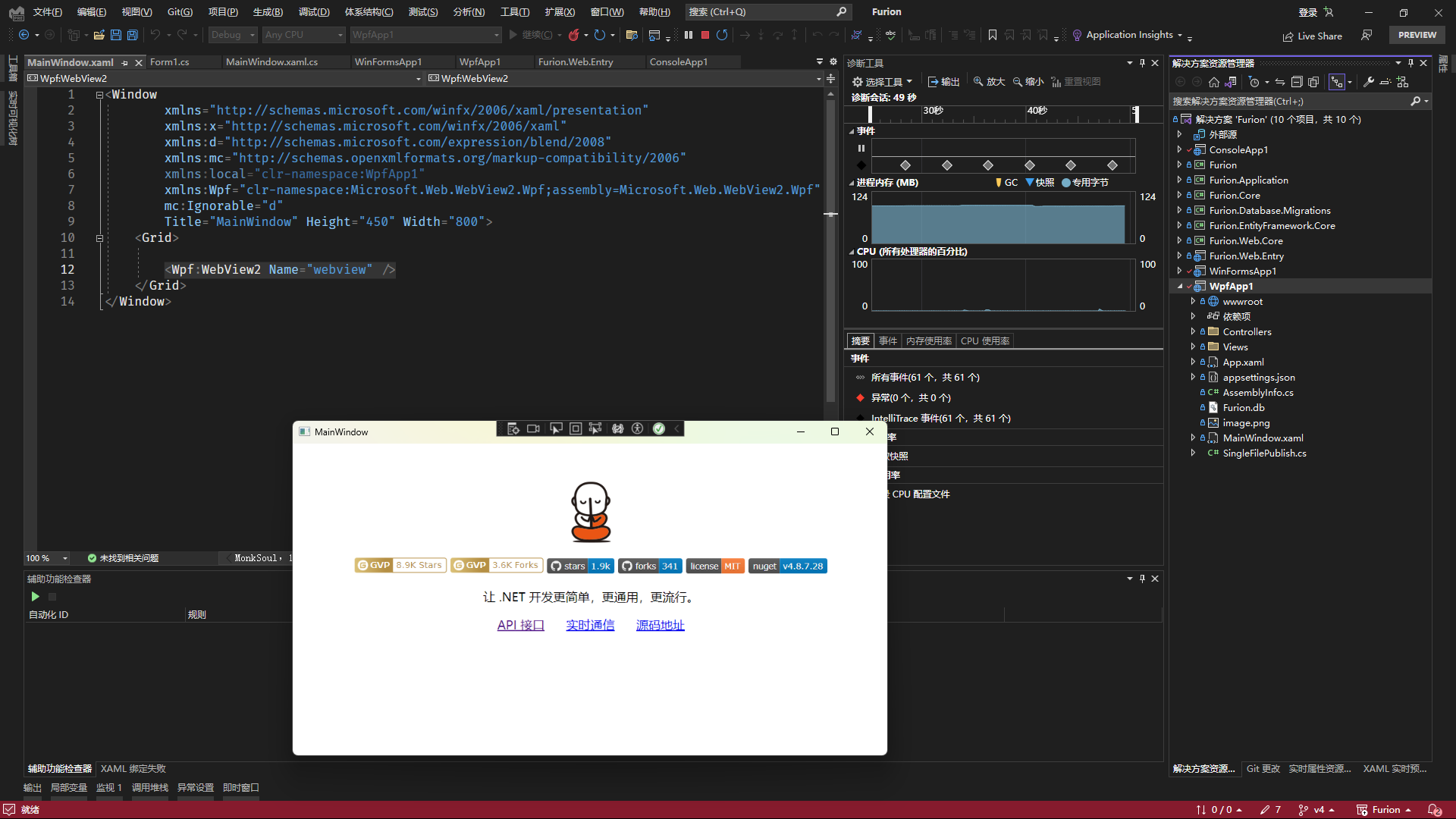 Furion 框架灵活的架构模式使得 Web 和各客户端(WinForm/WPF/Console) 项目之间迁移变得非常简单,只需要极少数修改即可实现无缝迁移。