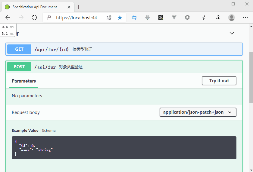 Furion 还提供了 [DataValidation] 特性方便在模型参数中使用 ValidationTypes 常见验证或自定义验证。