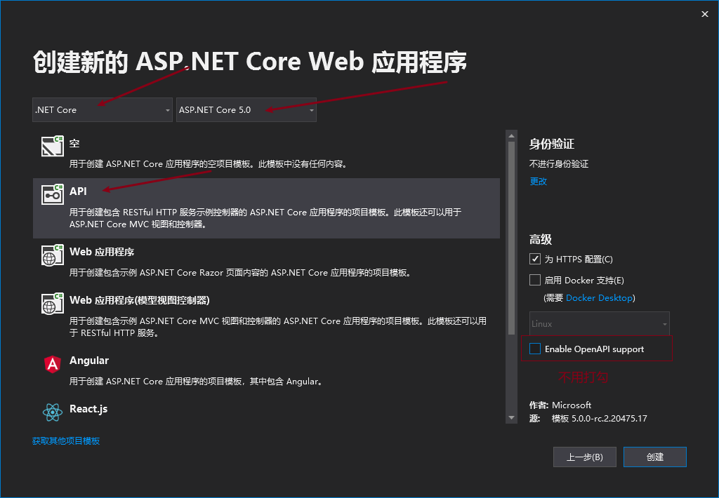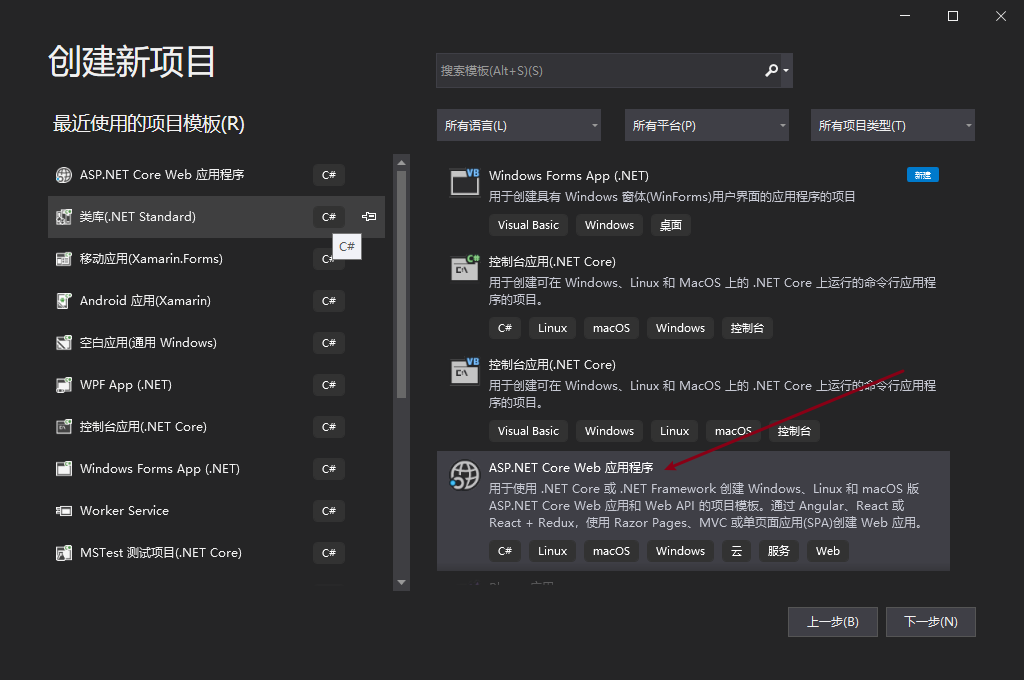 2.2.1.1 创建 ASP.NET Core Web 应用程序