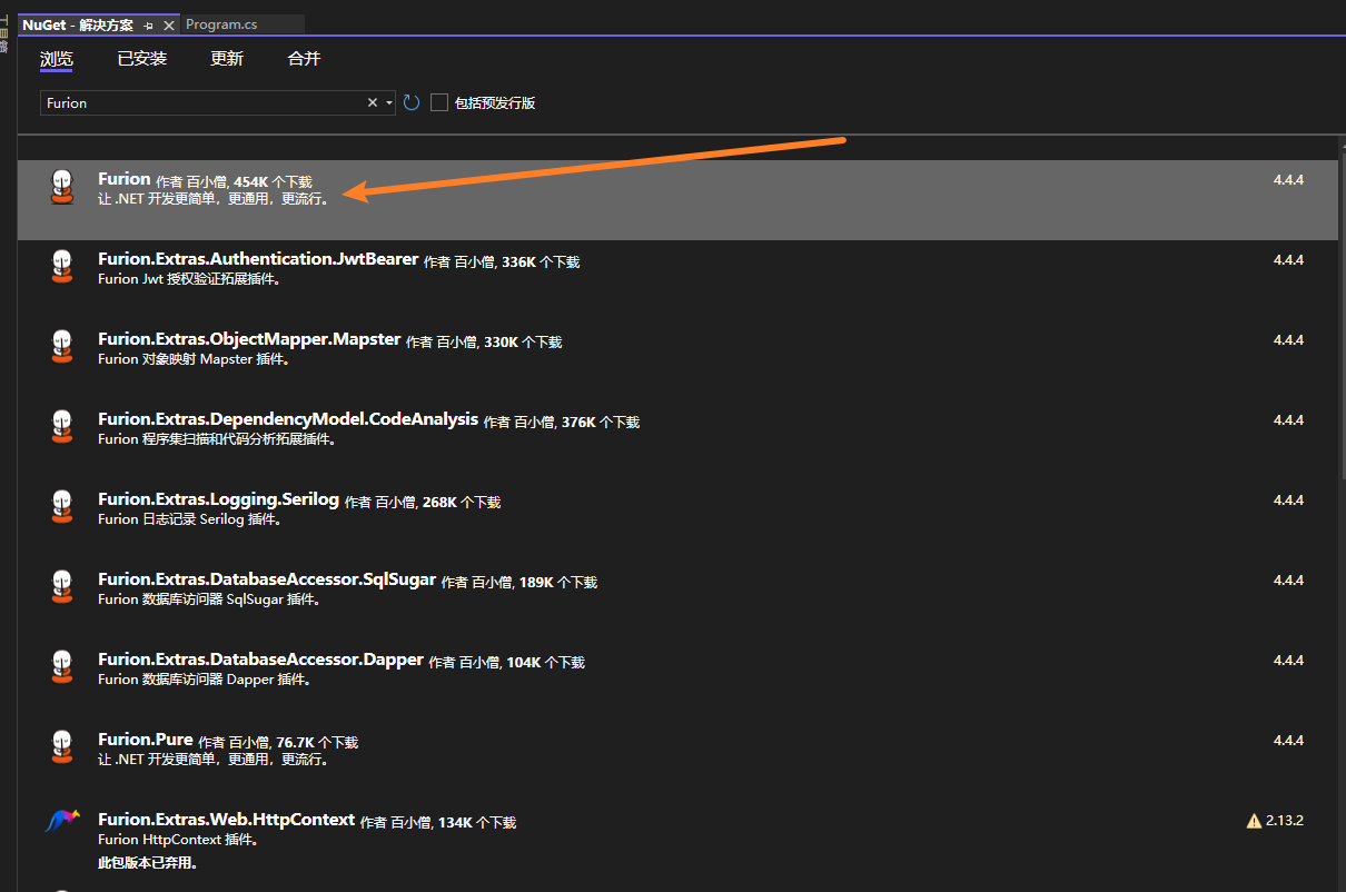 2.4.2 添加 Furion 依赖包