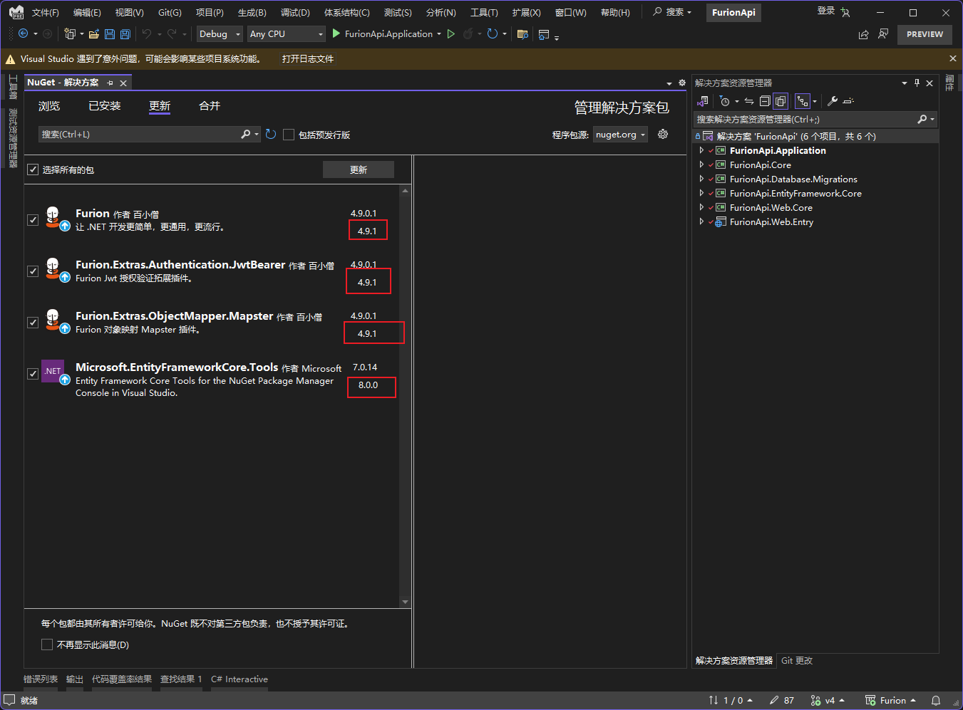 Furion 所有包升级至 v4.9.1.7 版本,同时 Microsoft 所有包升级至 v7.0.14 版本,如: