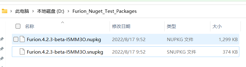 有了这两个包之后,就可以在本地磁盘中创建文件夹并放进去,如 D:\Furion_NuGet_Test_Packages。