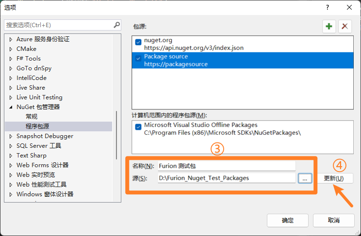 dotnet restore "YourProject.Web.Entry/YourProject.Web.Entry.csproj" -s "D:\Furion_NuGet_Test_Packages";