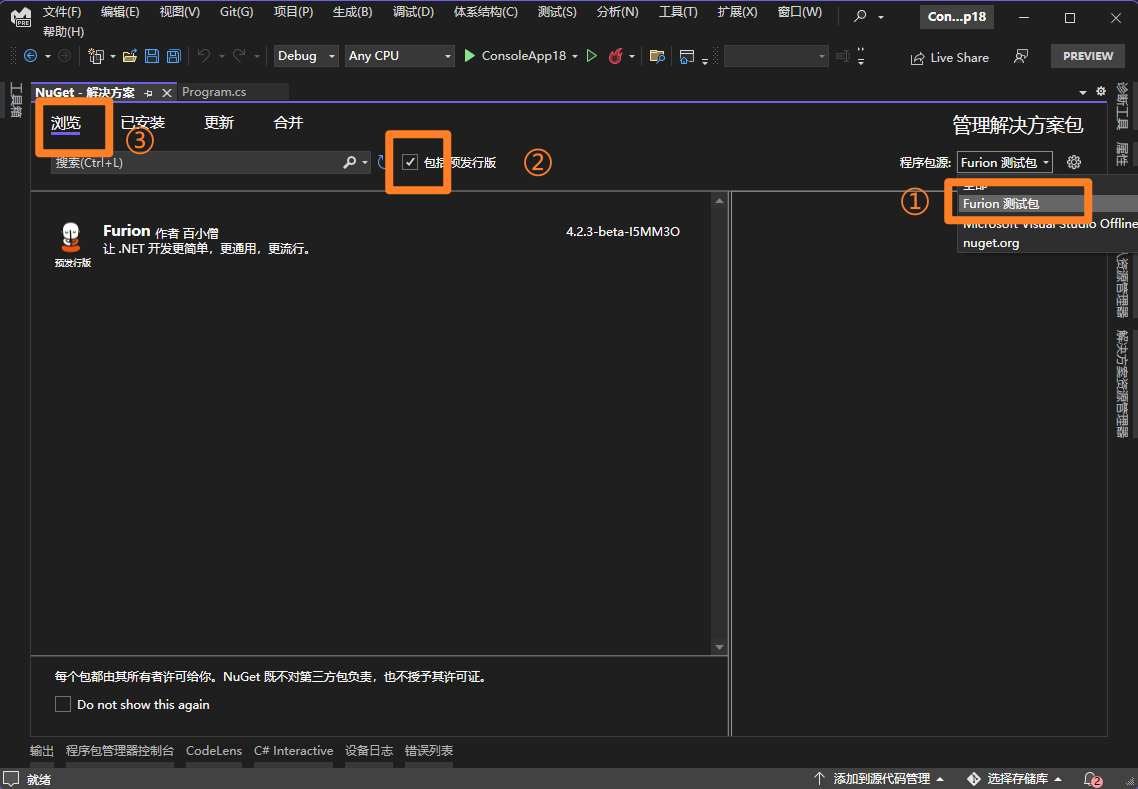 正常情况下,我们都是通过 NuGet 在线平台(Visual Studio 内置的 NuGet 包管理 器)安装拓展依赖,但有时候我们不希望发布到 NuGet 平台或者只想在本地使用又或者先在本地测试通过再发布。
