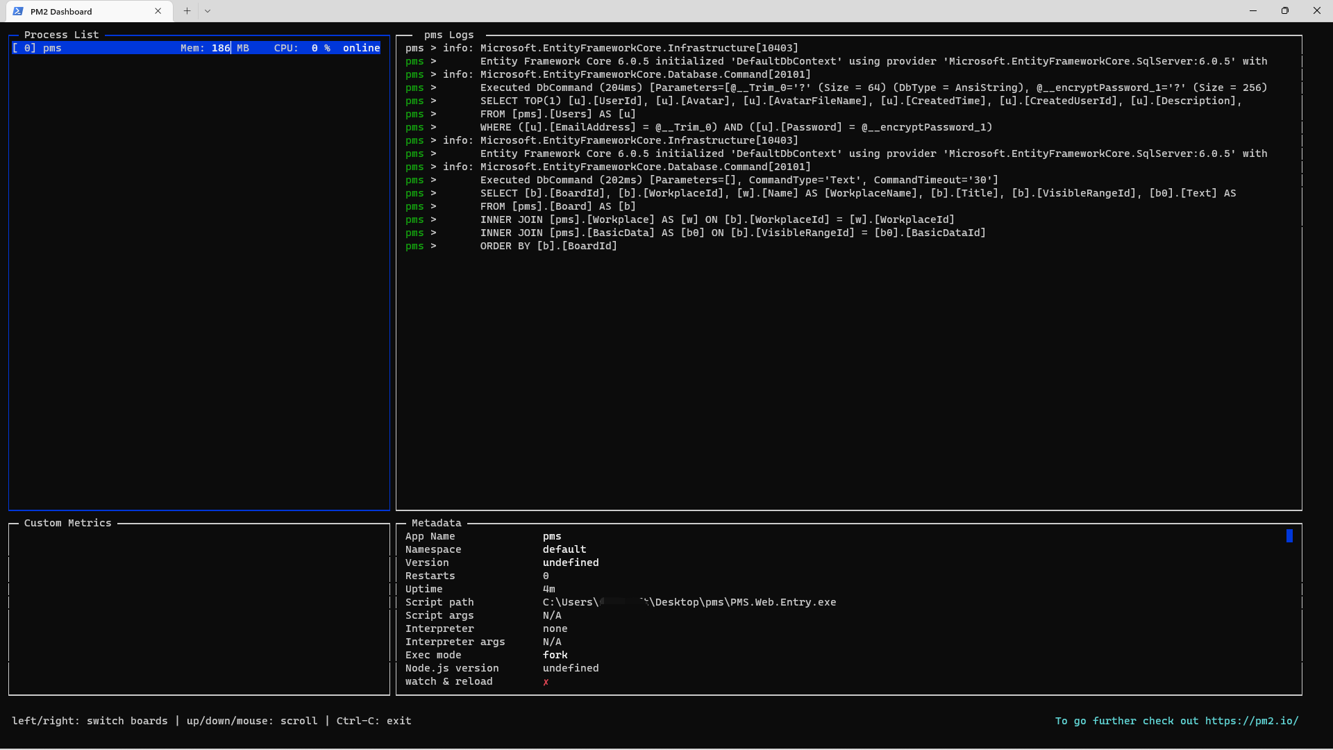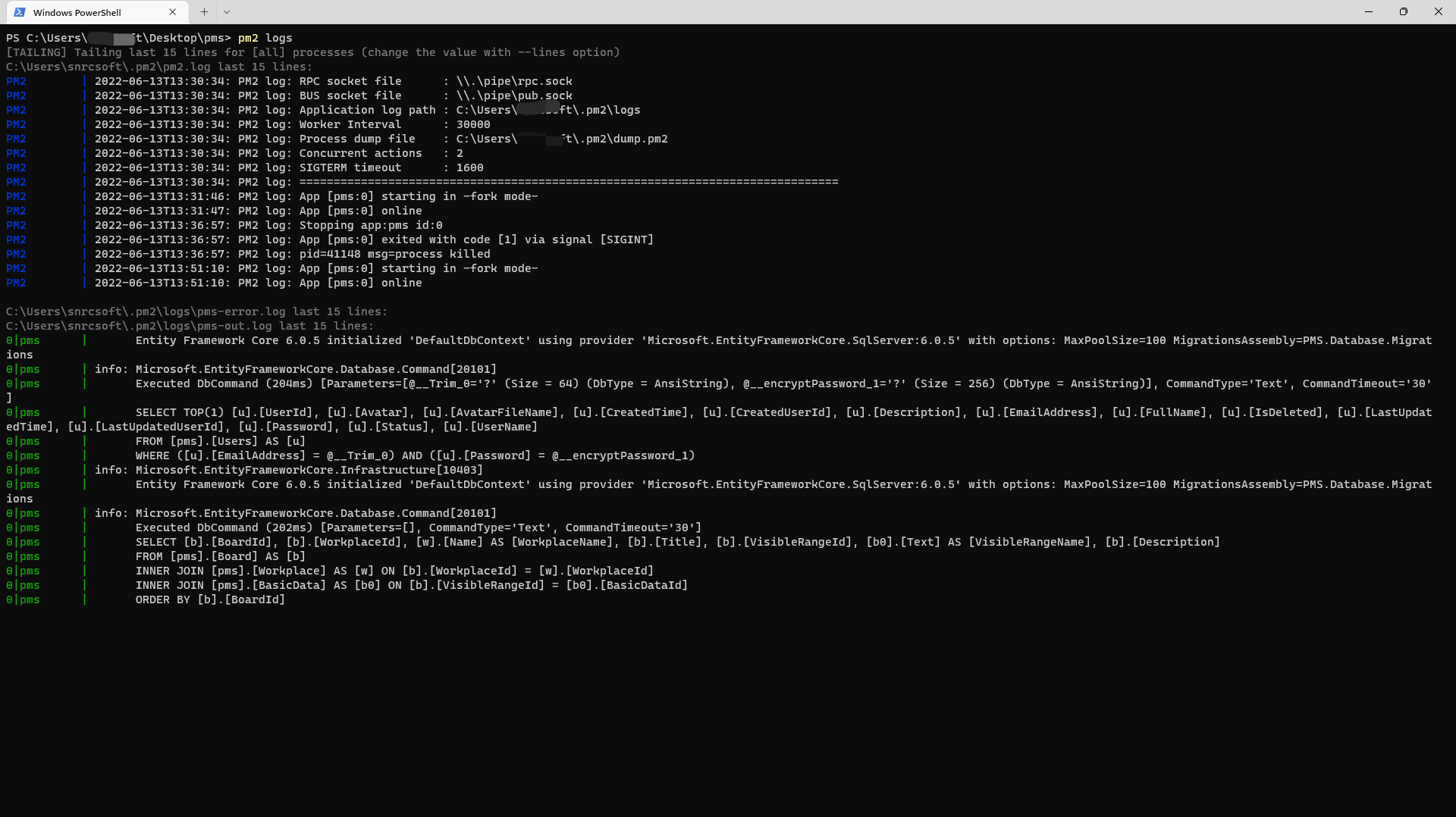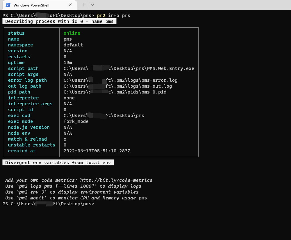 PS C:\Users\bqrjsoft\Desktop\pms> pm2 start --name pms PMS.Web.Entry.exe