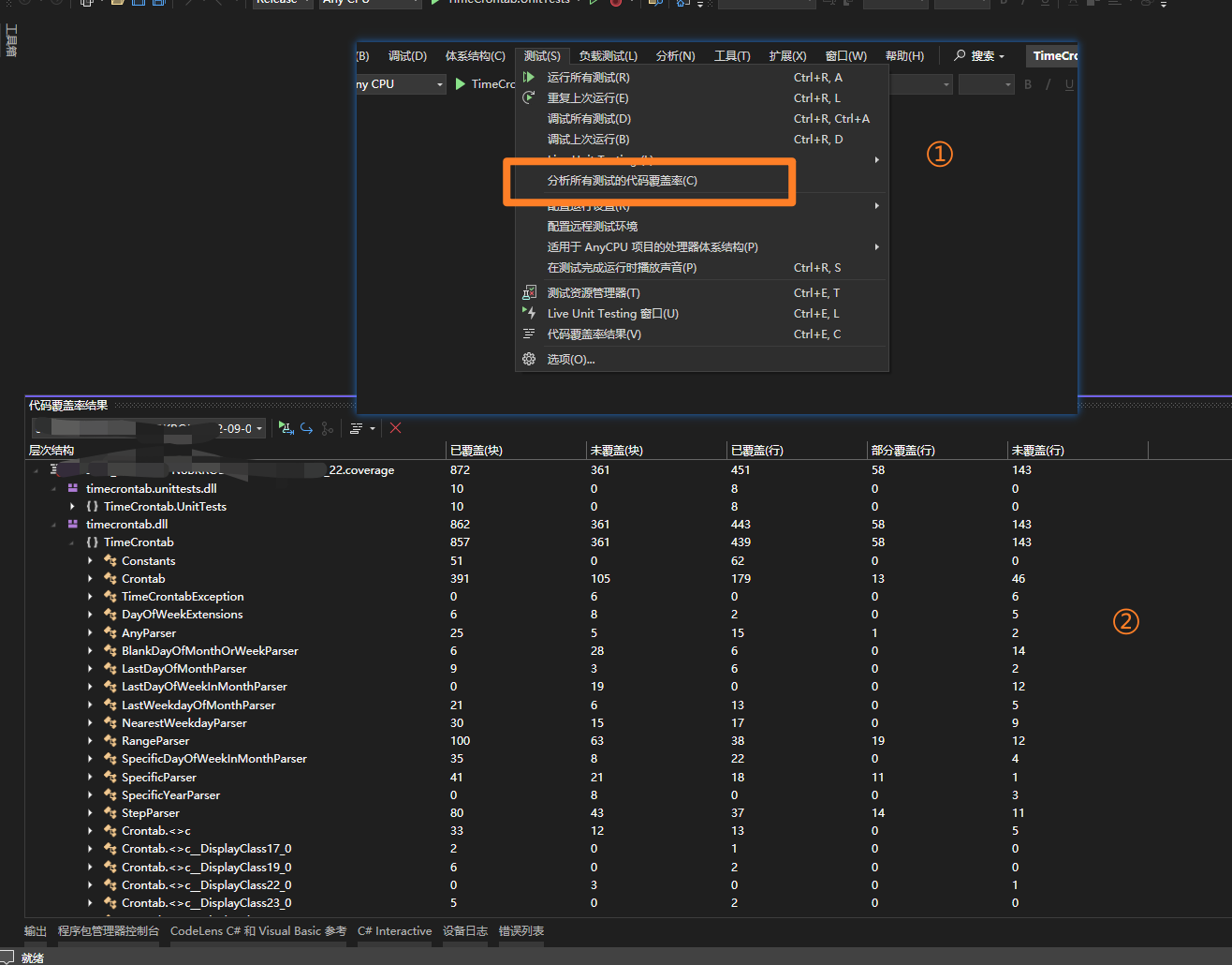 Visual Studio 提供了分析单元测试覆盖率工具,如: