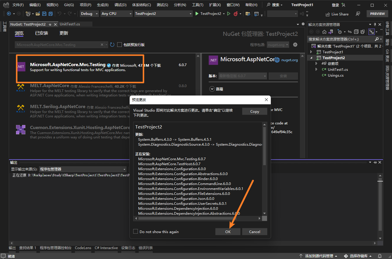 1. 添加 Microsoft.AspNetCore.Mvc.Testing 微软提供的集成测试拓展