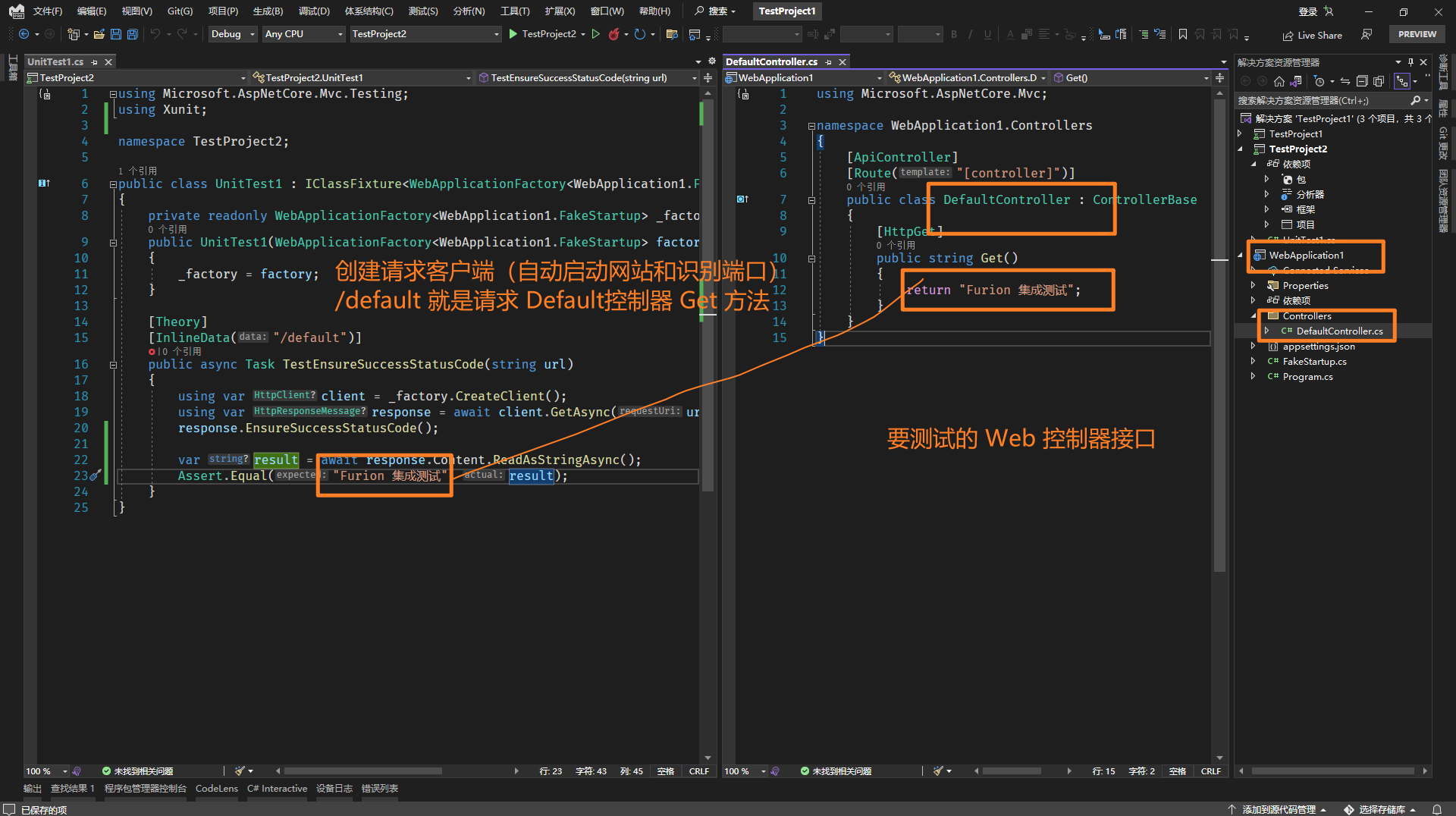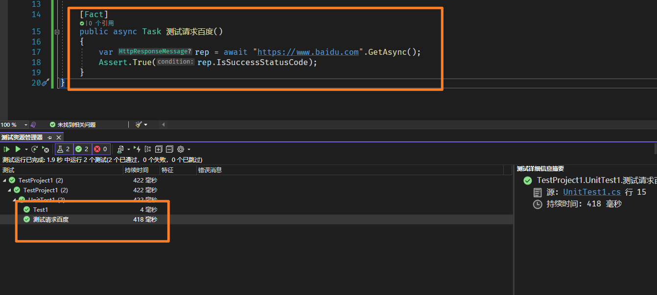 Furion 是跨平台、跨项目的开发框架,下面在单元测试中演示 远程请求 并请求 https://www.baidu.com 数据,并测试是否请求成功。