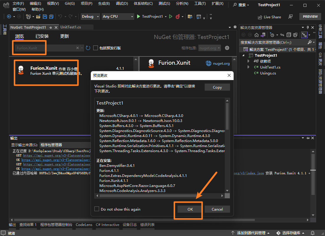 如果使用的是 Furion.Pure 则安装 Furion.Pure.Xunit 这个拓展包。